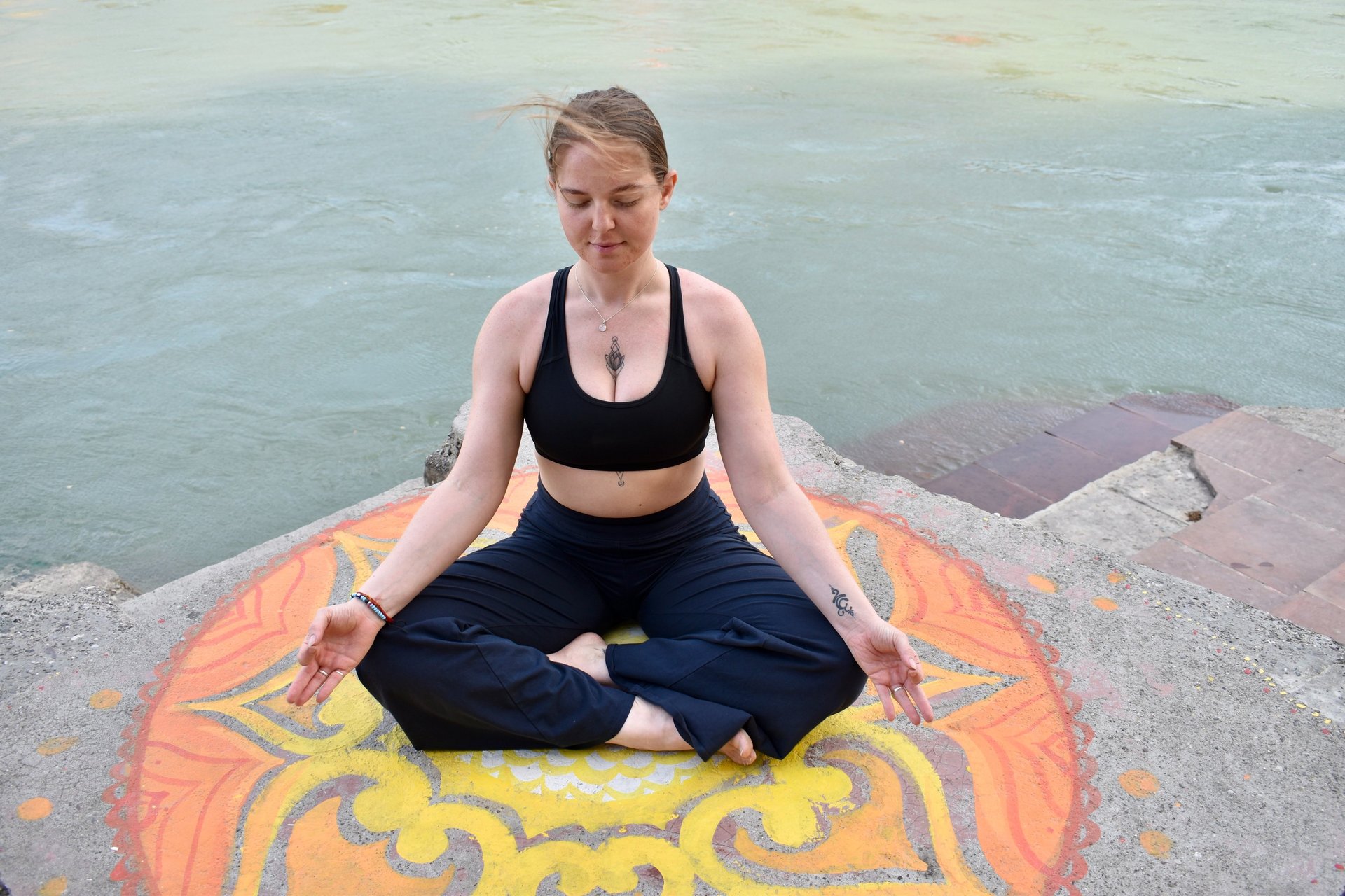 Je nach Aufbau der Stunde können reinigende Atemübungen, Bandhas sowie sanfte Bewegungsabfolgen wie zum Beispiel Cat & Cow integriert werden, um Energie zu mobilisieren und die Wahrnehmung im Körper zu vertiefen.